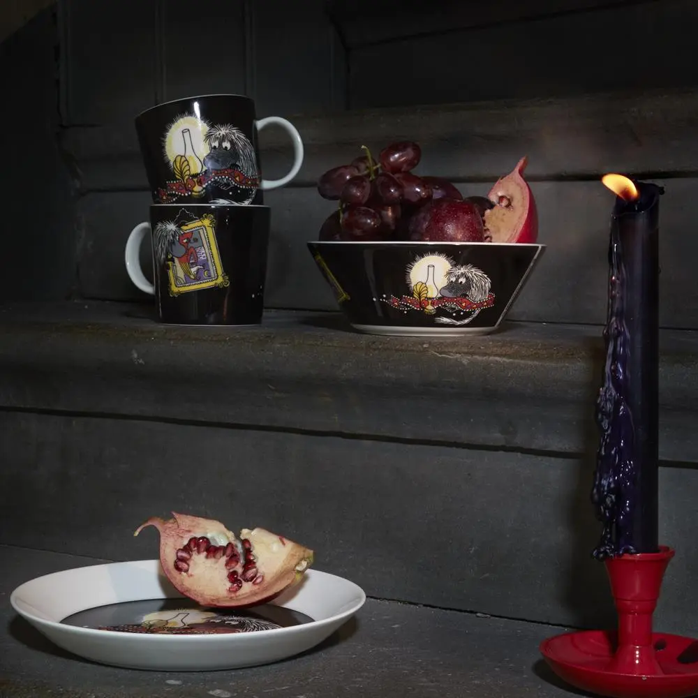 La taza Moomin Ancestor de Arabia ha sido diseñada por Tove Slotte-Elevant. Ancestor es uno de los personajes de las historias de los Moomin (también conocidos como los Mumin) de Tove Janssons. Él tiene más de 100 años de edad, no habla y vive detrás de la estufa en la casa de los Moomim. Utiliza la taza para servir el té, café o cualquier bebida y combínala con el resto de vajilla de los Moomin de Arabia.