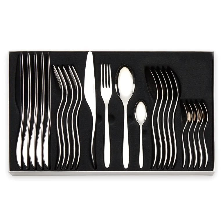 La elegante cubertería Lykke de la firma noruega Hardanger Bestikk se compone de cubiertos con hermoso diseño y líneas suaves. Consta de cucharas, tenedores y cuchillos hechos en acero inoxidable de gran calidad. La cubertería Lykke fue diseñada por Odd Leikvoll en el año 2013. Sin duda, ¡una cubertería que durará mucho tiempo y nunca se verá obsoleta!