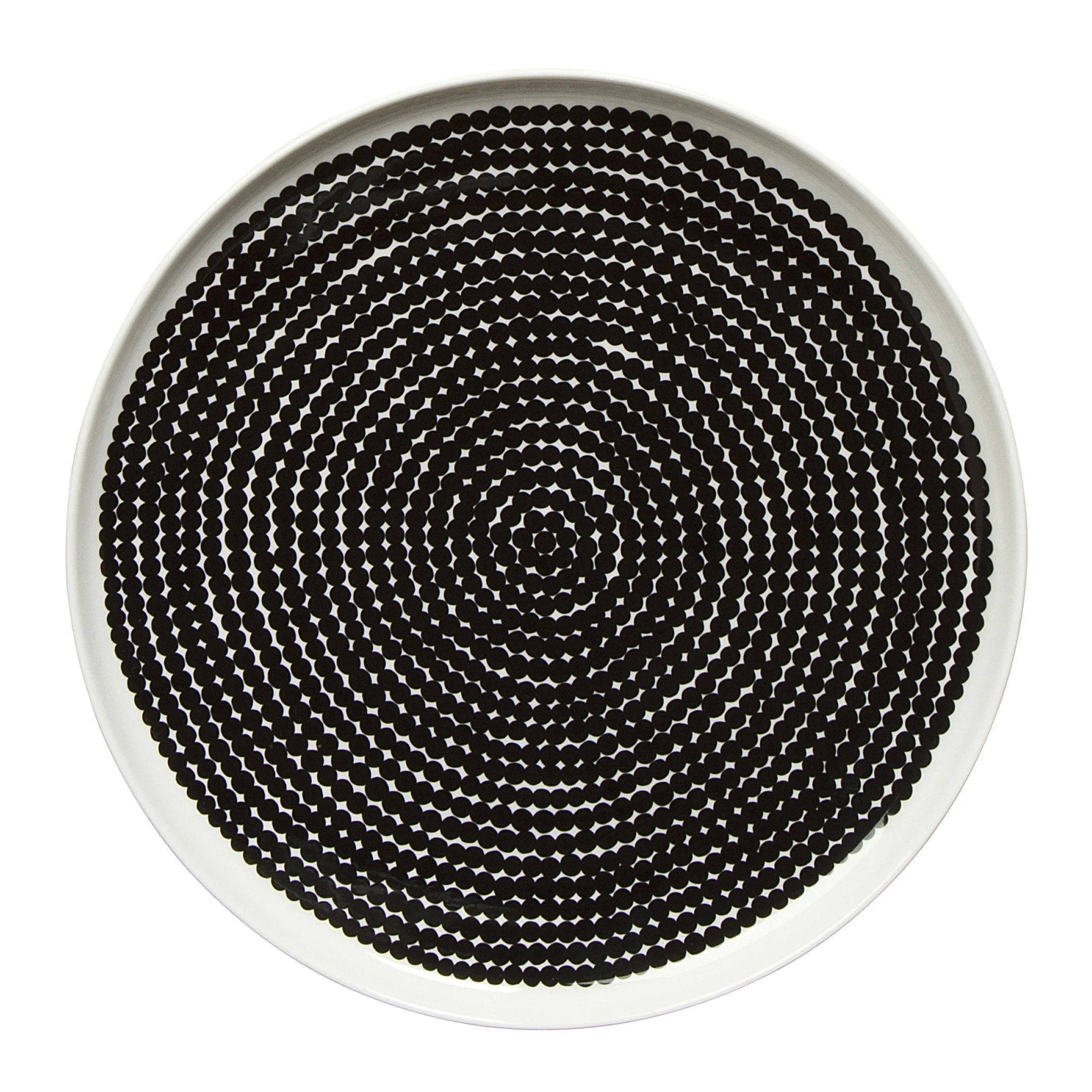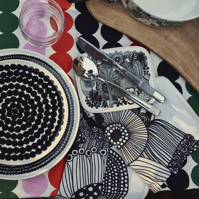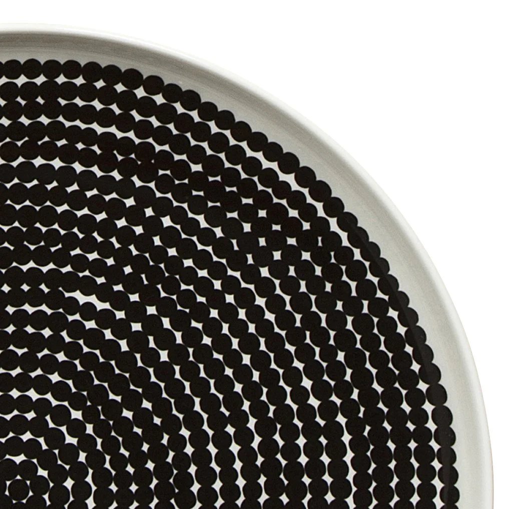 Pon tu mesa de manera minimalista y a la vez llena de juego con el plato Räsymatto de la conocida firma finlandesa Marimekko. El plato llano está hecho de cerámica de gres de alta calidad con su característica decoración de puntos en color negro. ¡Haz coincidir el plato con el resto de piezas de la vajilla Räsymatto de Marimekko!